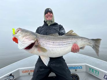 Rockfish - The East Coast's premier sport fish. In early spring we target trophy fish that migrate into the bay to spawn. Our focus is safe practice catch and release as the big females are the future of our fishery. Late spring through the summer months we fish on structure, shallows and exciting surface blitzes for resident Rockfish. The fall is great fishing with cooler temperatures, the fish are fattening up for winter and very hungry. Nothing wrong with taking a fish home for dinner or to a local restaurant where we have an arrangement to cook the catch right from the boat.