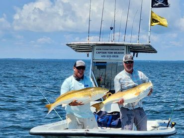 We get these Big Red Drum just South of Annapolis, between Mid August and Mid September, there is no guarantee on these fish but when you get one on light tackle they are a thrill. Best to book a full day to chase these guys.